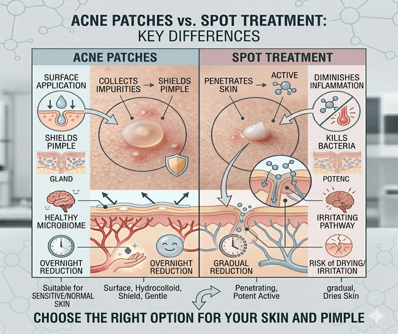 It depends on the type of acne—Acne patches work best for surface pimples, while spot treatment targets deeper acne.