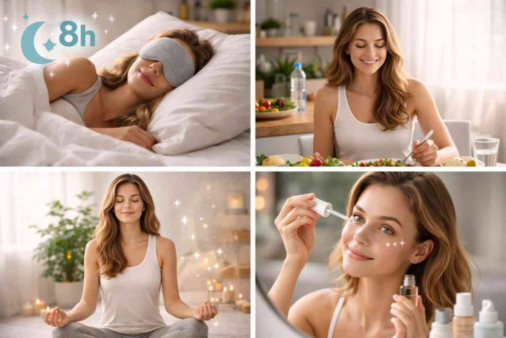 Lifestyle changes like better sleep, balanced diet, and stress management can significantly improve skin health over time. However, basic skincare steps like cleansing and sun protection are still necessary for optimal results.