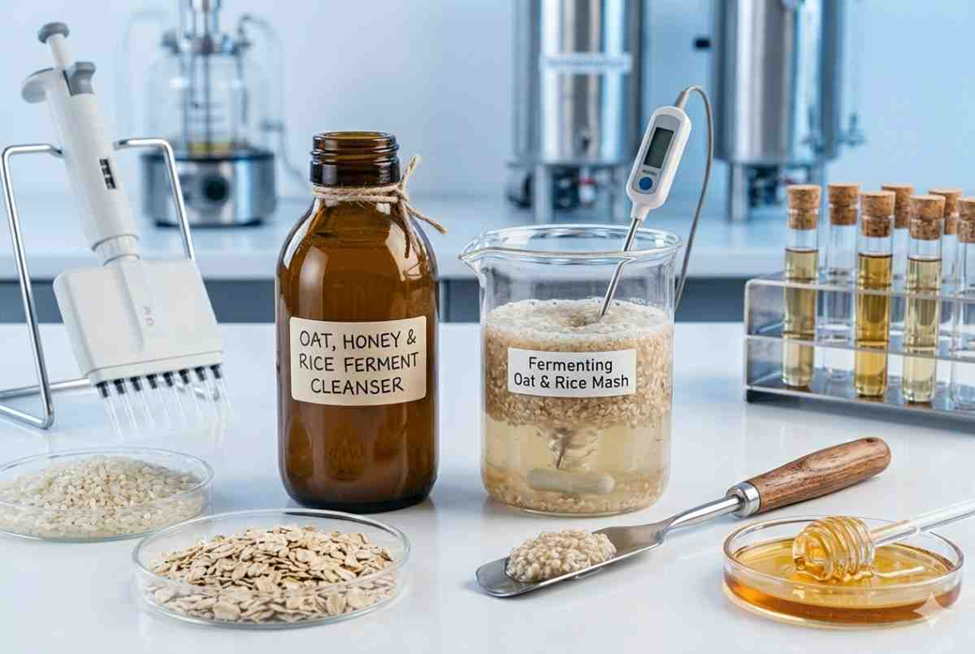 The combination of fermented oat, rice, and honey extracts delivers multiple skin benefits at once. Fermented oats provide soothing effects together with skin hydration, fermented rice enhances skin tone and texture, and fermented honey functions as a moisture lock which helps the skin to regenerate. The three ingredients work together to enhance product absorption while decreasing skin irritation and increasing skin compatibility with other active skincare ingredients.